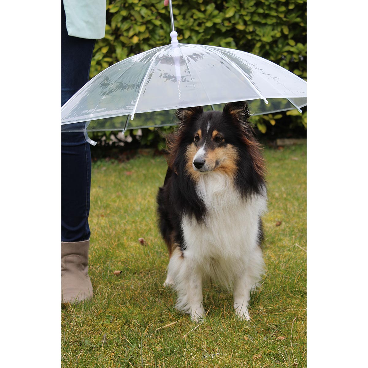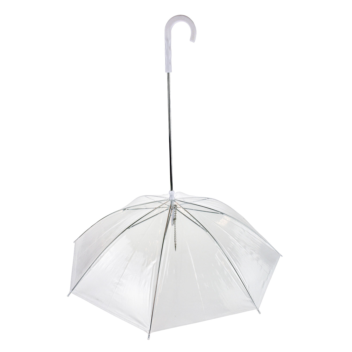 Prozoren dežnik z notranje strani ima povodec, medtem ko je ročaj na vrhu. Zaprto zavzame enako prostora kot običajen dežnik.