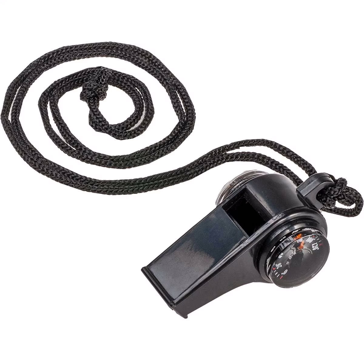 Piščalka ima vgrajen kompas in vrvico za nošenje okoli vratu.